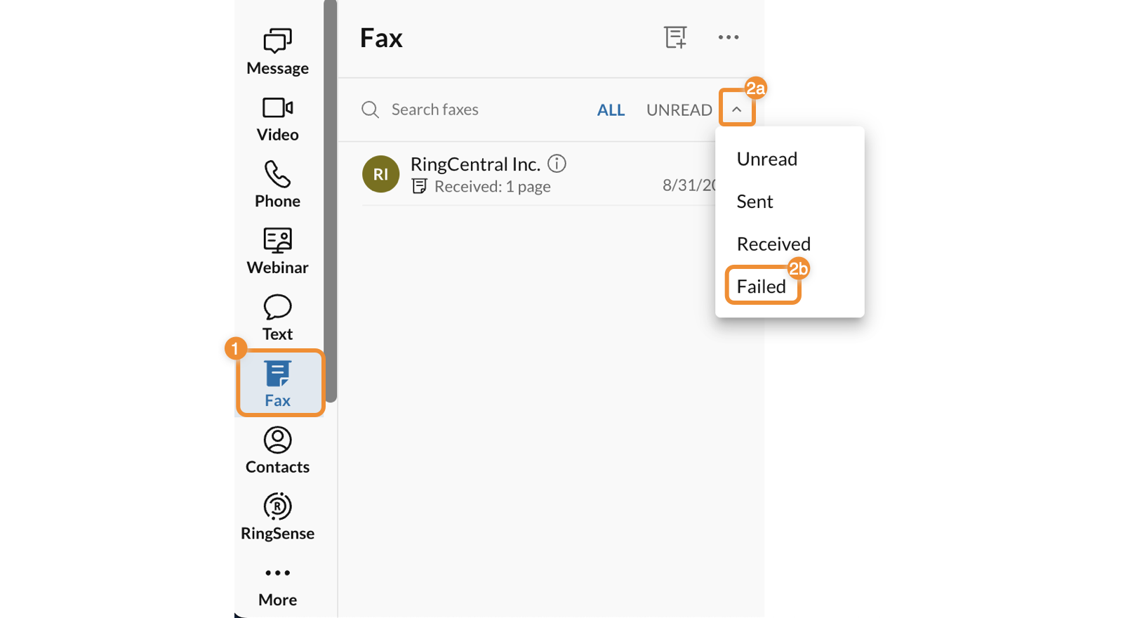 Next to the Search faxes field, click the dropdown arrow and select Failed.